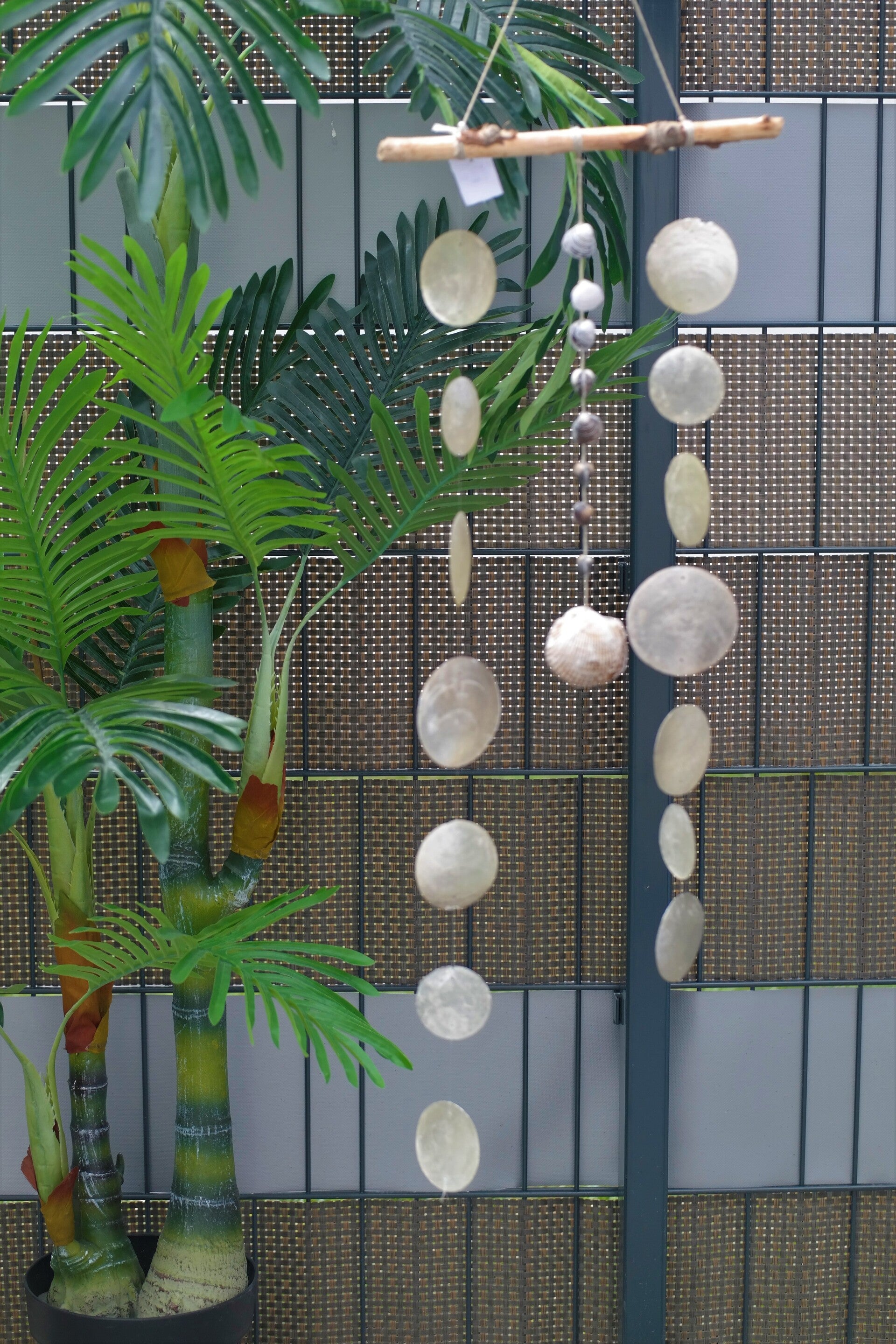 Windspiel mit Treibholz und Muscheln - Naturschnur