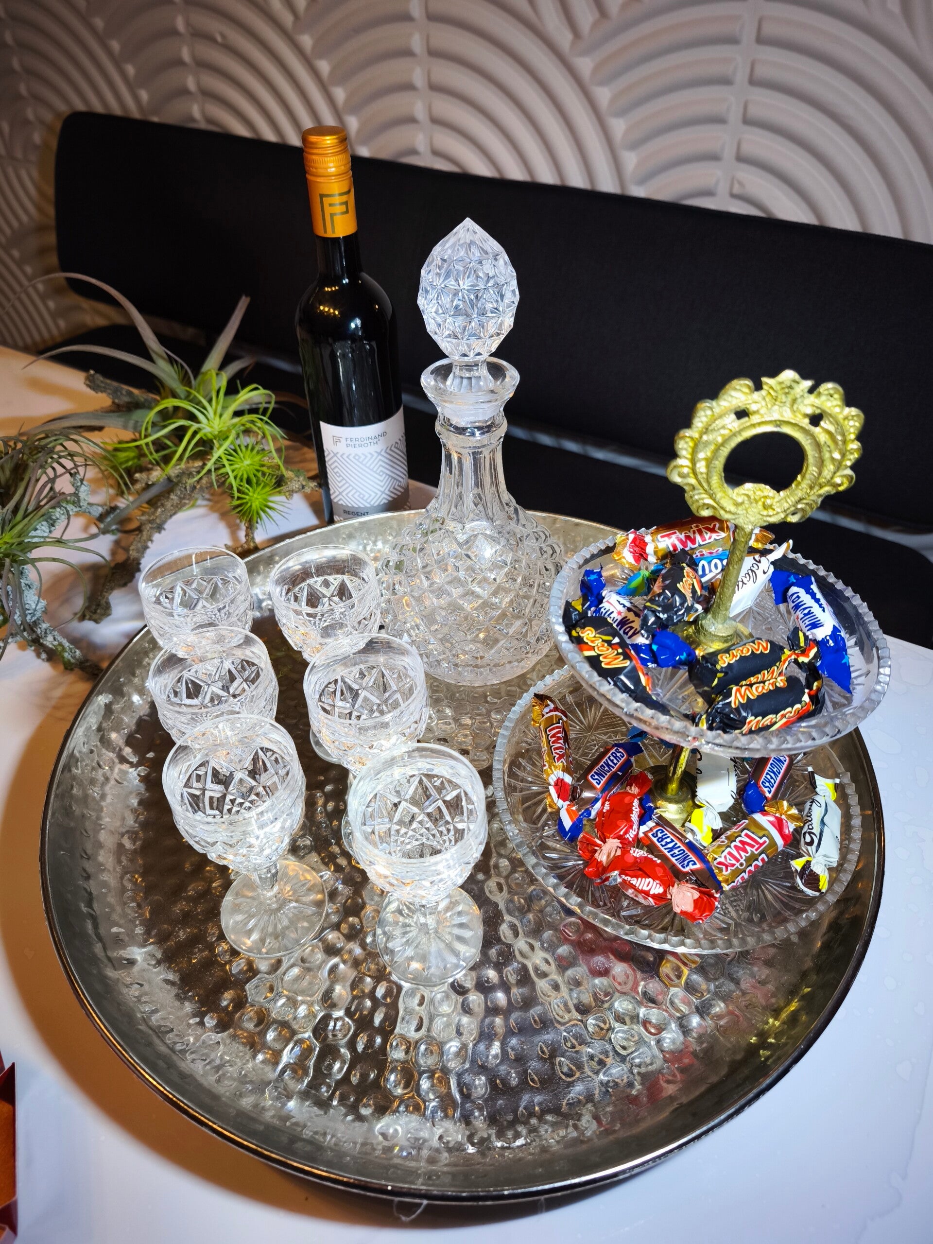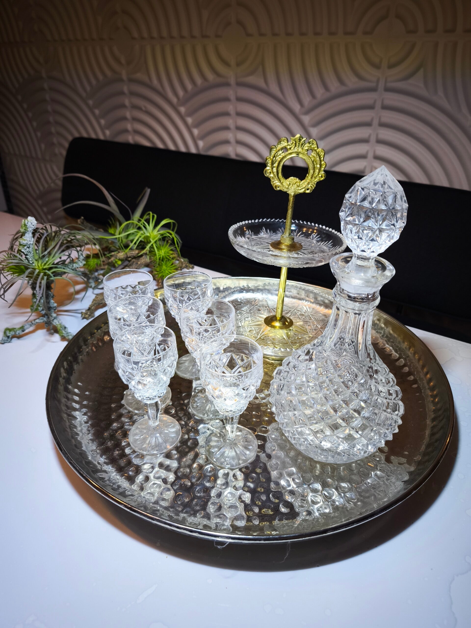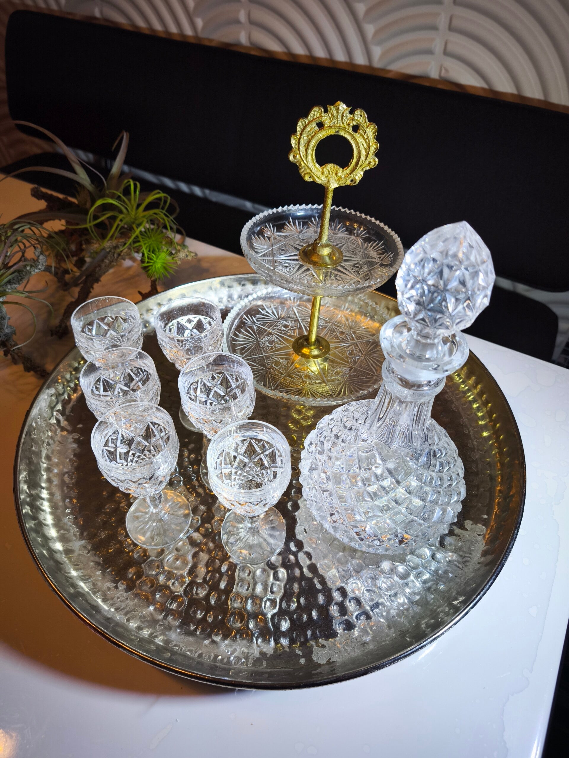 Vintage Kristall Set Gläser und Karaffe mit Etagere