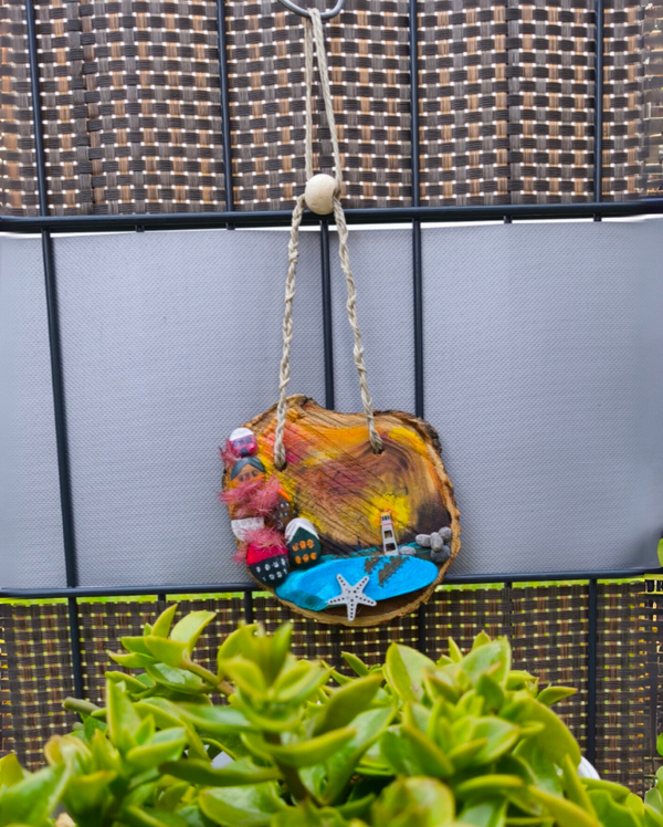 Naturholz selbst zugesägt, geschliffen und mit Acryl Farben bemalt.