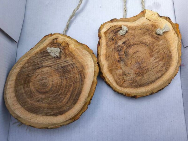 Naturholz selbst zugesägt, geschliffen und mit Acryl Farben bemalt.