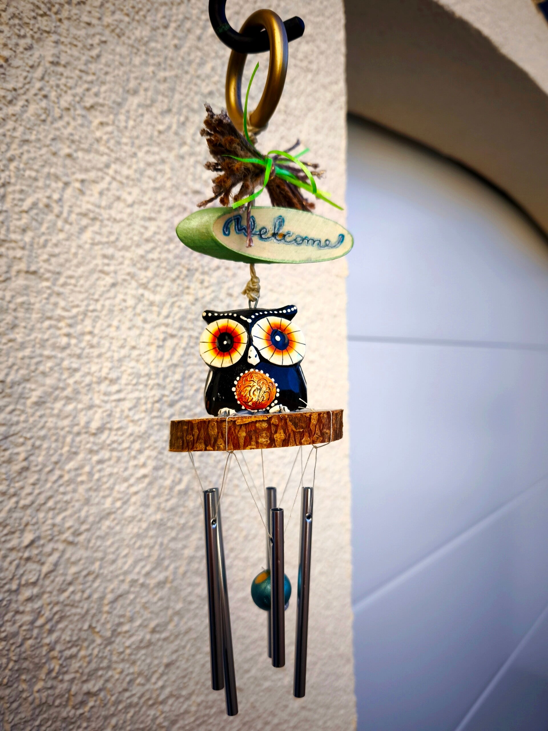 Windspiel Eule Schwarz, Dekorativer Gartenaufhänger, Deko Handgefertigt