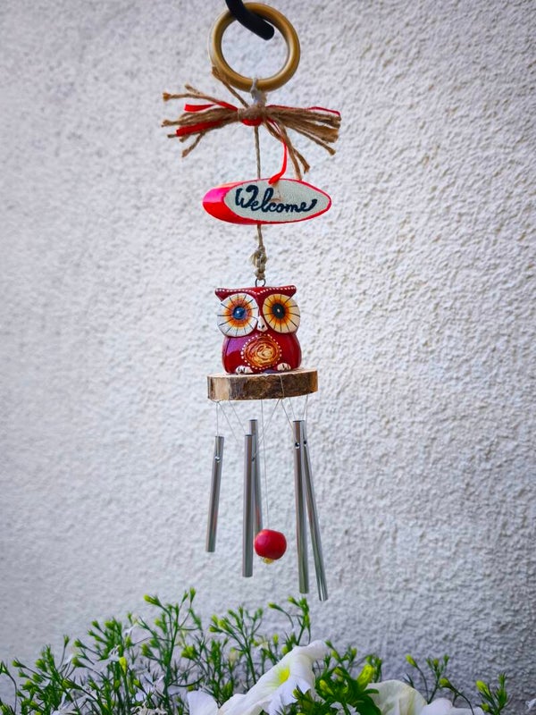 Dekorativer Gartenaufhänger - Windspiel Eule Rot