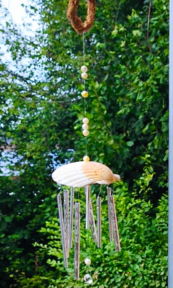 Dekorativer Gartenaufhänger Windspiel, Deko Handgefertigt, Muschel