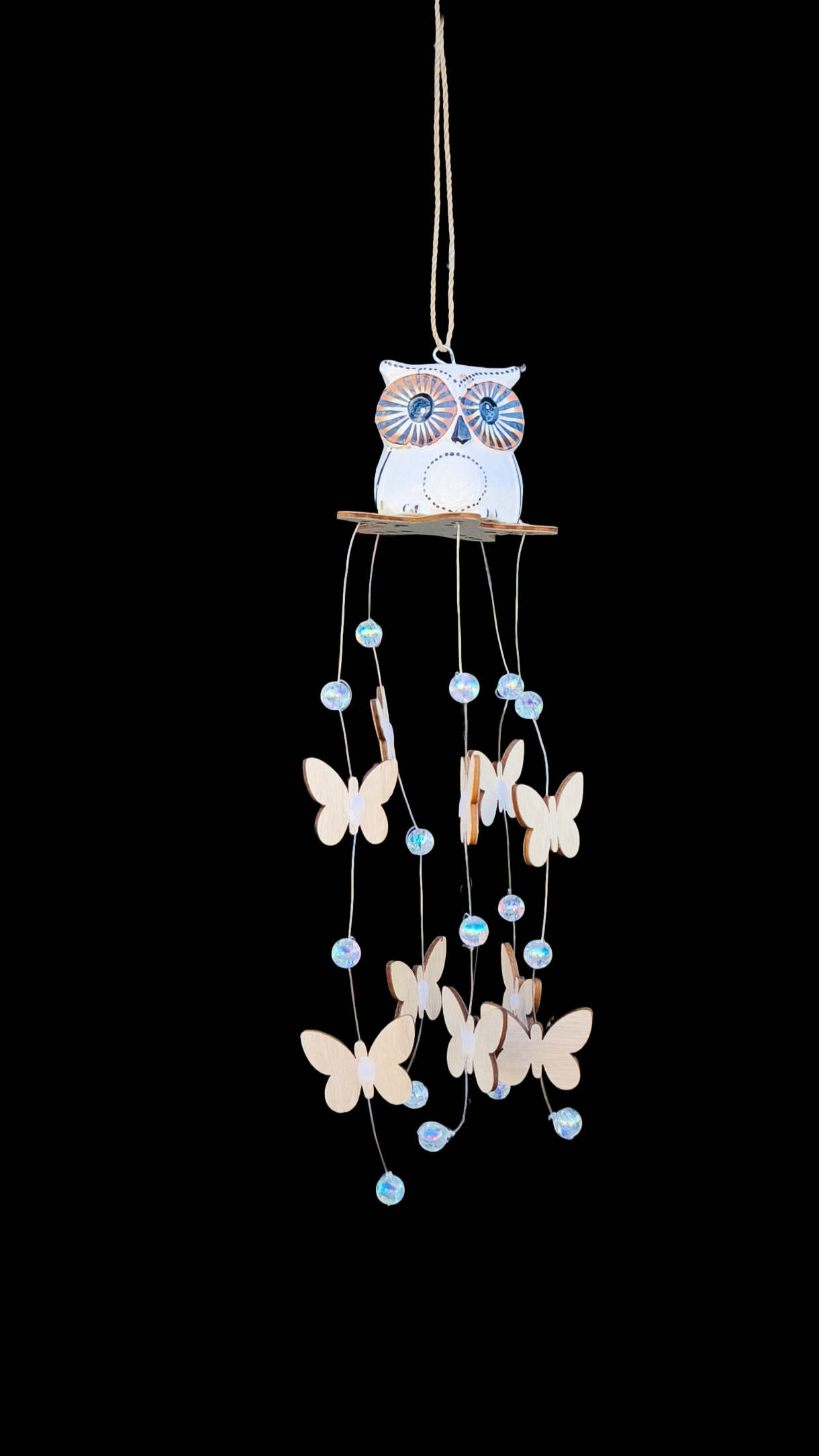 Windspiel Eule Weiß, Dekorativer Gartenaufhänger, Deko Handgefertigt