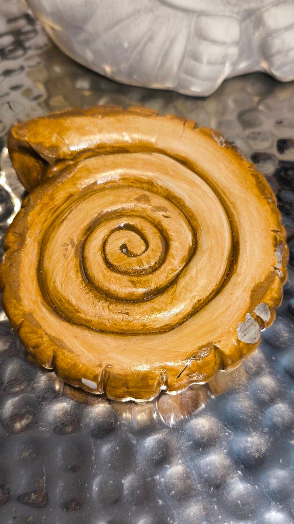 Ein stilvoller Räucherstäbchenhalter in organischer Spiralform / Ammonit, perfekt um beim Abbrennen von Räucherstäbchen eine entspannte und harmonische Atmosphäre zu schaffen.