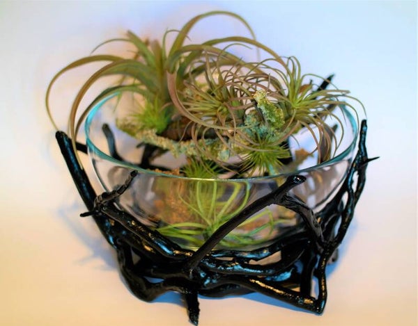 Deko Vase Treibholz Kranz Schwarz mit Glaseinsatz auch als Blumentopf Deco 35 cm