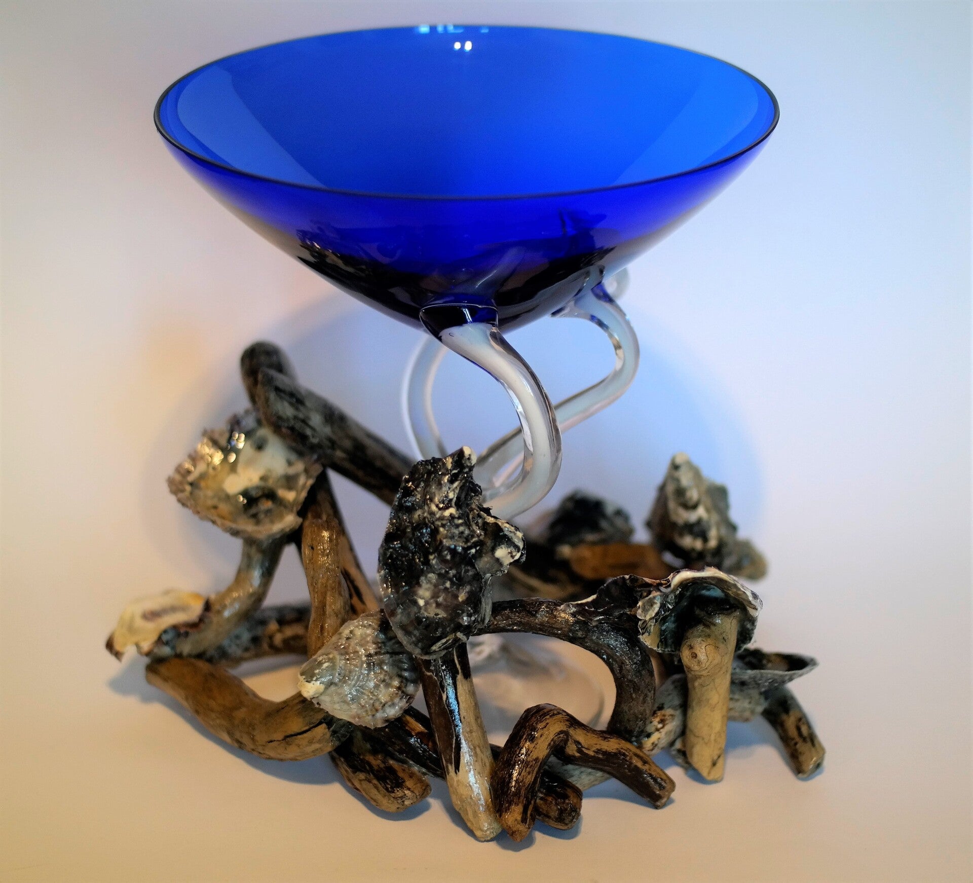 Deko Vase ´Treibholz Kranz Fruchtschale mit Glasvase Blau 26 cm