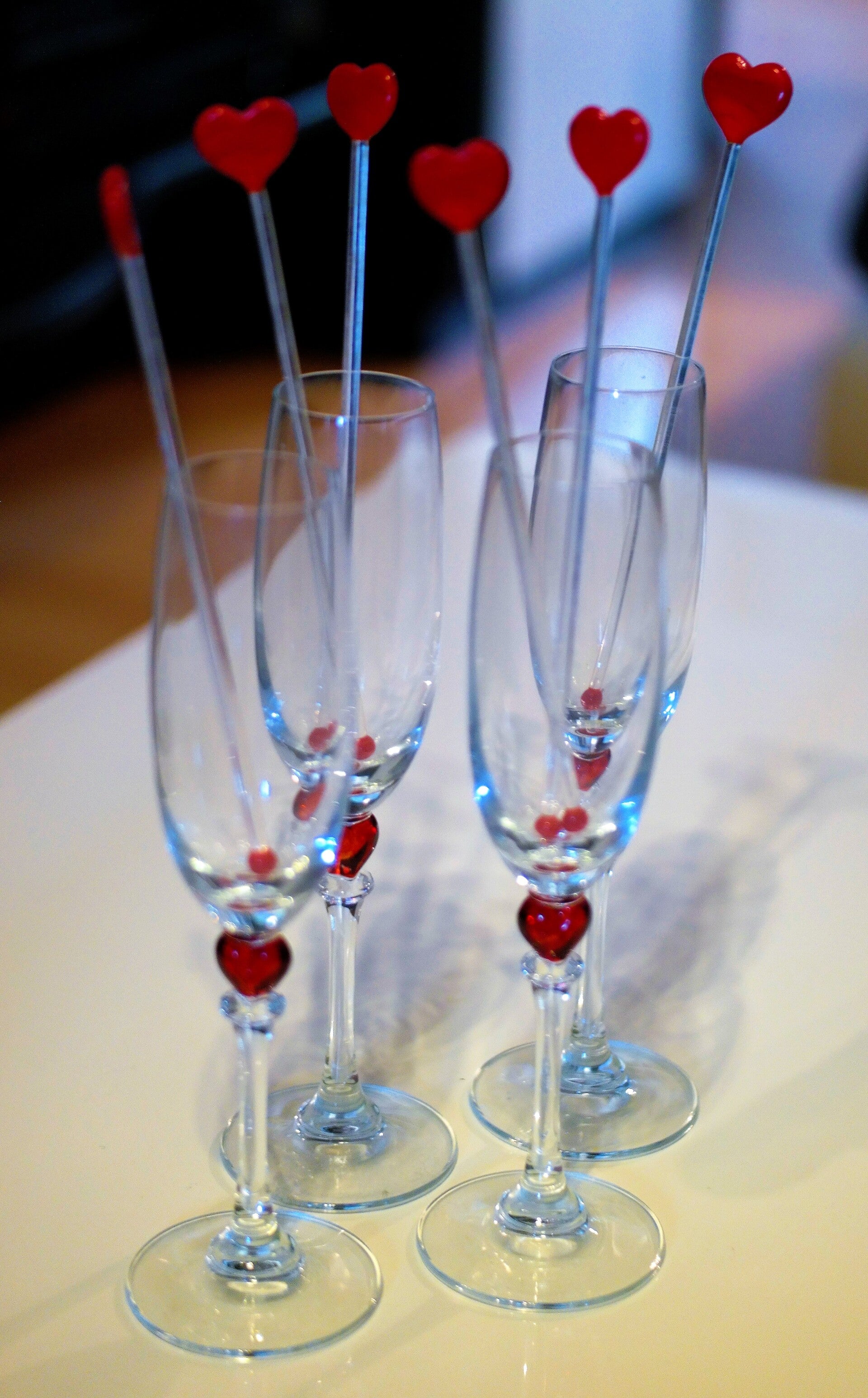 Sektgläser "Valentin" mit eingearbeitetem Herz 4er Set mit 6 stäbchen aus Glas