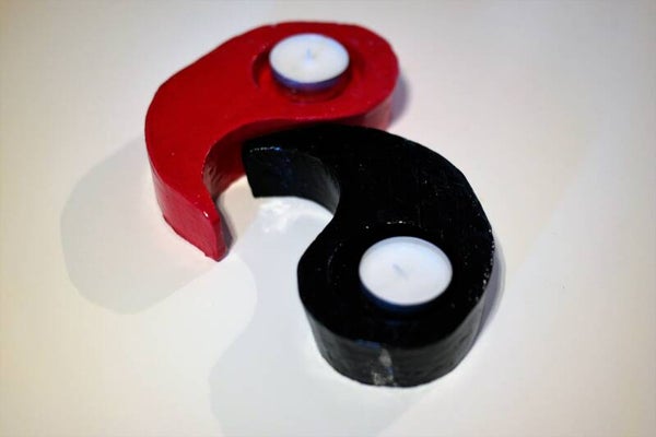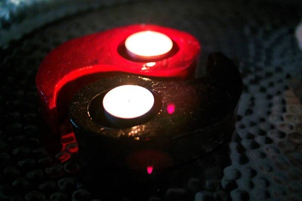 Schöner Teelichthalter "Yin & yang" klassisch in rot-schwarz