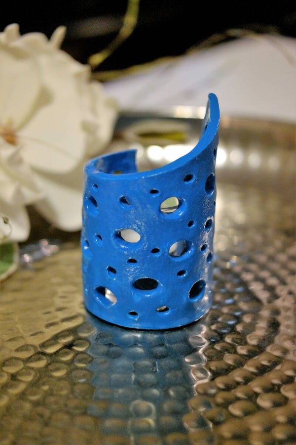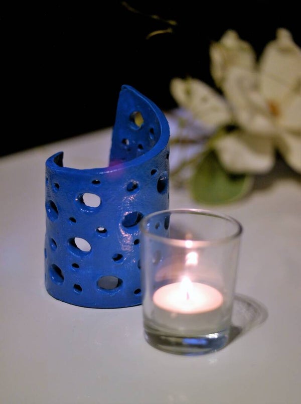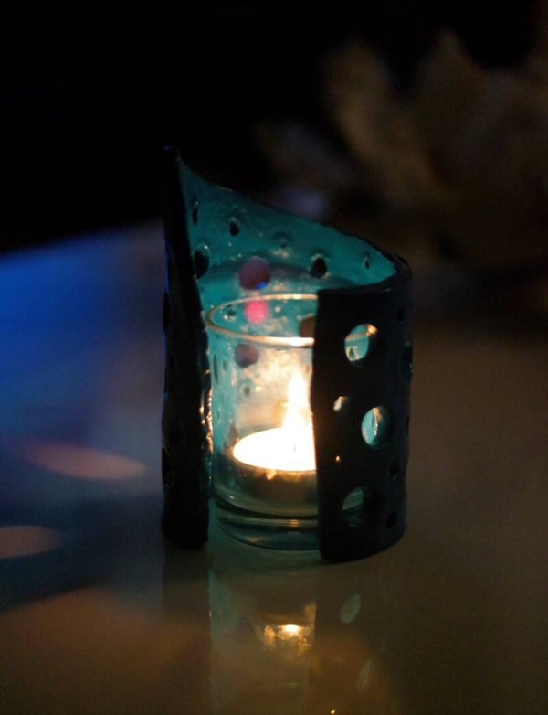 Windlicht / Teelichthalter in Blau Handgemacht